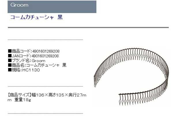 【商品サイズ】幅136×高さ135×奥行27mm 重量18g■商品コード:4901601269208■JANコード:4901601269208■ブランド名:Groom■商品名:コームカチューシャ 黒■規格:HC1130【代引きについて】こちらの商品は、代引きでの出荷は受け付けておりません。