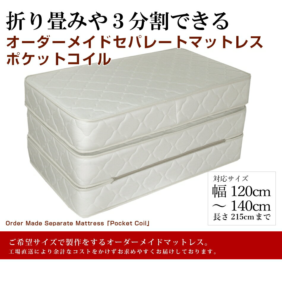 オーダーメイド セパレートマットレス ポケットコイル ダブル(幅120cm〜140cm 長さ215cm以下) 「マットレス ダブル 三つ折り オリジナルマットレス」 サイズオーダー オーダーメード 車中泊 【後払い不可】