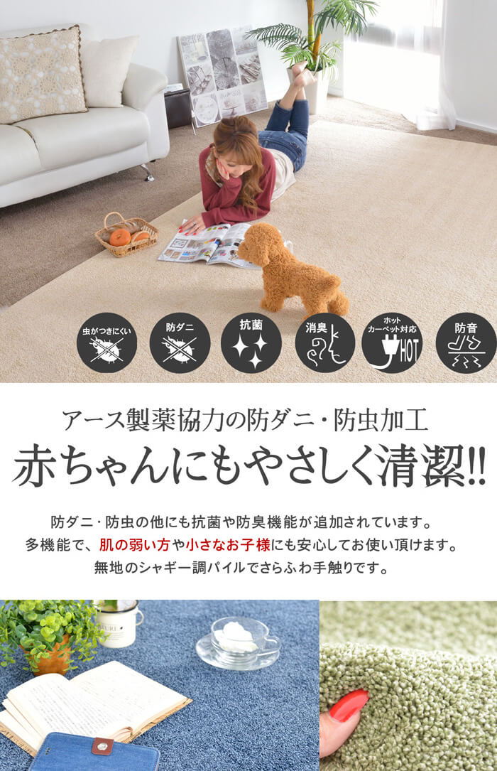 そんなアース製薬の技術協力もあり安心してご使用いただけるカーペットが登場しました!免疫力の弱い赤ちゃんや小さなお子様がいるとやはり気にしてしまうのは安心して使いたい・・・ということではないでしょうか。