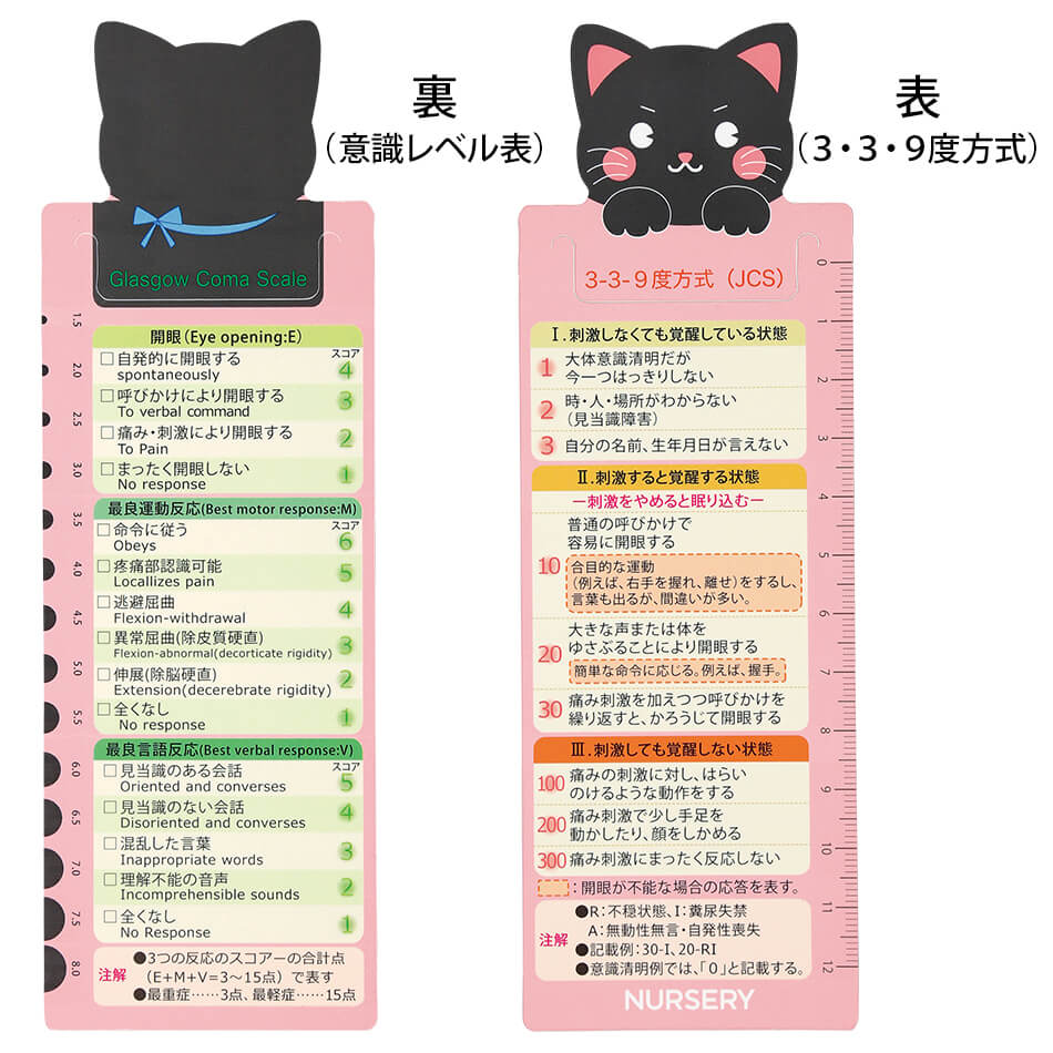 キリッとした黒ネコは、意識レベル表と3-3-9度式タイプ。