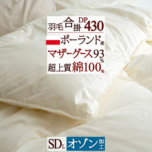 特別1500円引クーポン★羽毛布団 合掛け布団 セミダブル 日本製 春秋に丁度 ポーランド産ホワイトマザーグースダウン93% DP430 0.8kg 上質 綿100% 羽毛合掛け布団 寝具 羽毛ふとん 羽毛掛布団