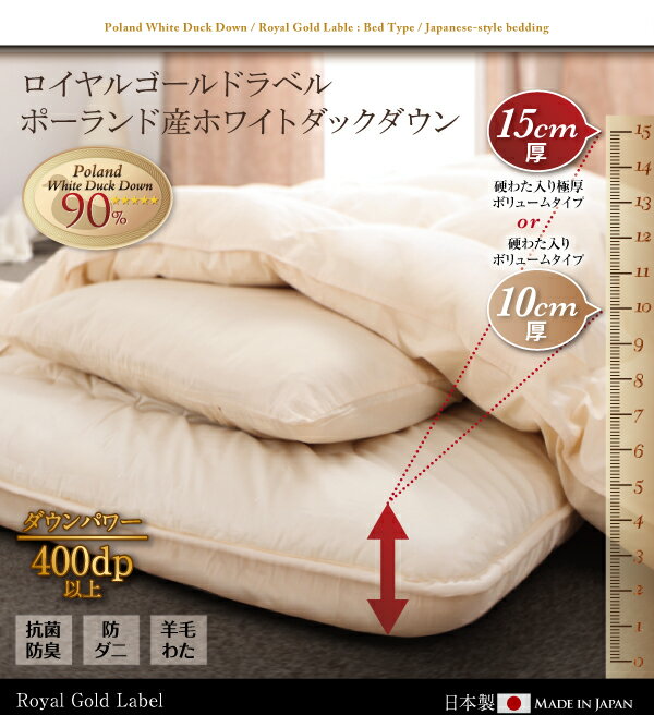 【P5倍★本日12時〜大サービス!】 極厚布団 ポーランド産ダック90% ロイヤルゴールドラベル羽毛布団8点セット プレミアム敷布団 極厚ボリュームタイプ セミダブル8点セット